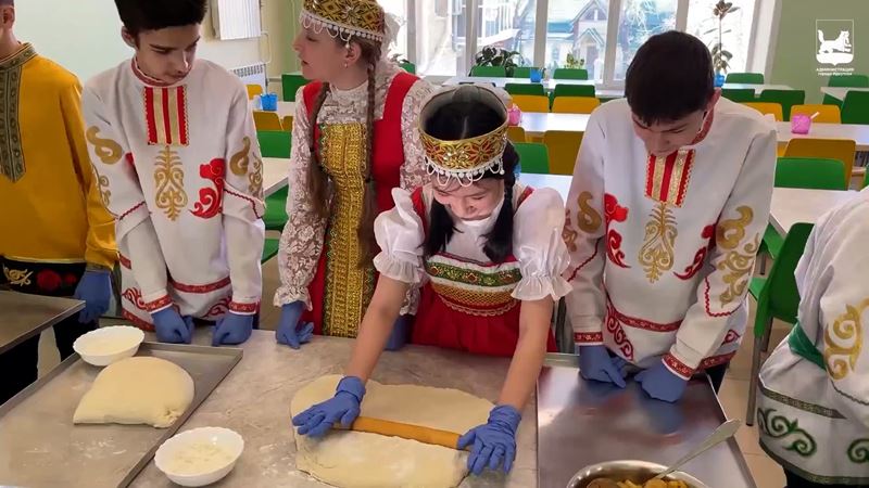 Школьники надели русские народные костюмы, рассказали о выбранных начинках и представили витаминные морсы из черноплодной рябины, клубники, облепихи и сливы. Напитки сварили работники столовой, они же подготовили тесто. Начинки выбрали самые популярные в Сибири: курица с луком, яблоки, курица с картофелем, рыба с рисом и луком, капуста. За процессом приготовления внимательно следили повара. Они рассказали детям, как замесить тесто, какие виды пирогов бывают, и помогли каждой команде испечь свое изделие.